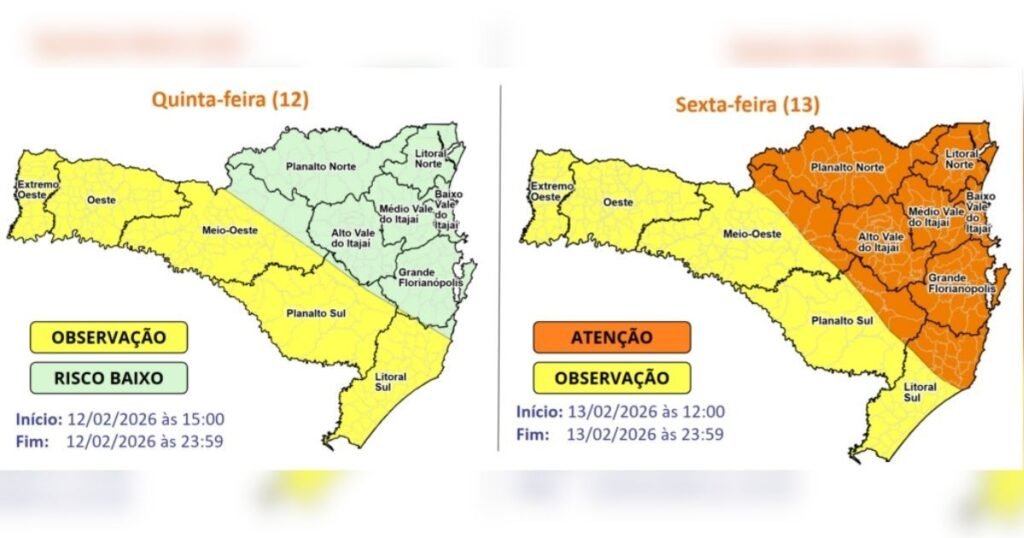 Entre o Vale do Itajaí e o Litoral Norte, há condições para chuva intensa com volumes elevados em curtos perídos de tempo, aumentando o risco de alagamentos e enxurradas….