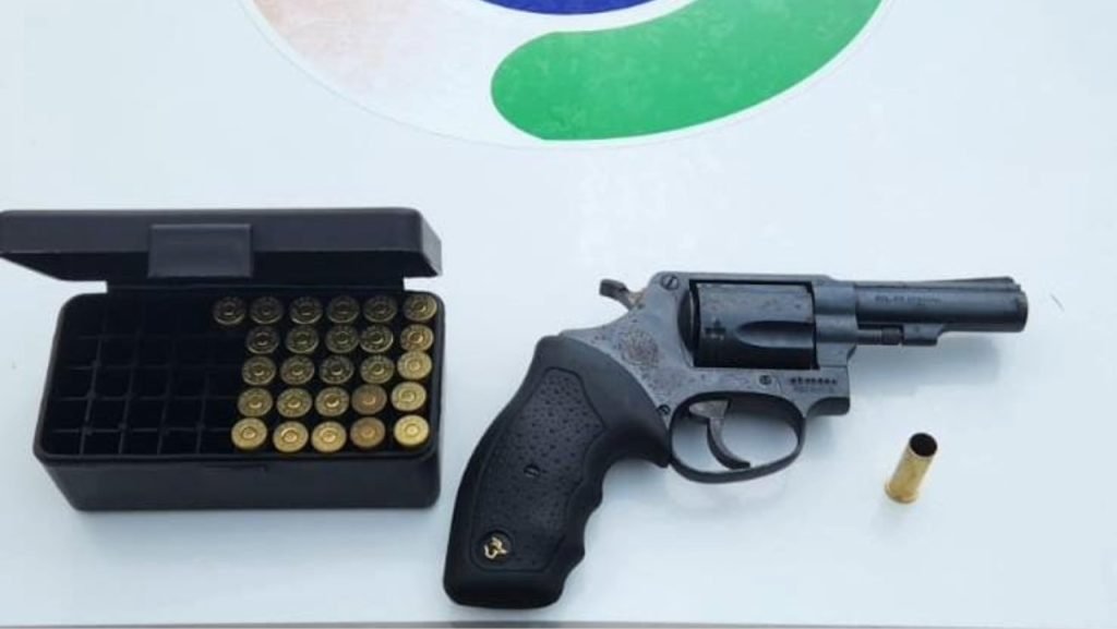 Com base nas informações fornecidas, os policiais realizaram buscas no local indicado e encontraram um revólver calibre .38. Junto à arma, foi localizada uma caixa contendo 26 munições intactas e uma munição deflagrada no tambor do revólver.