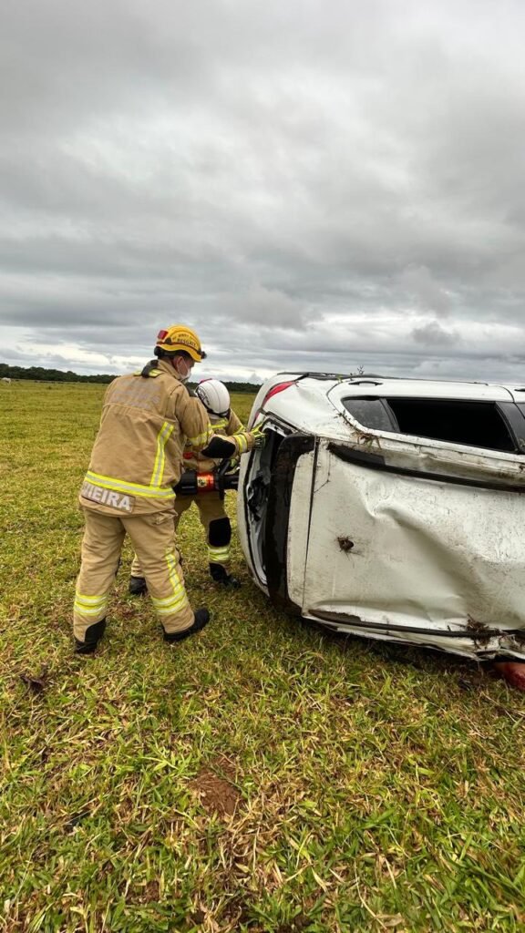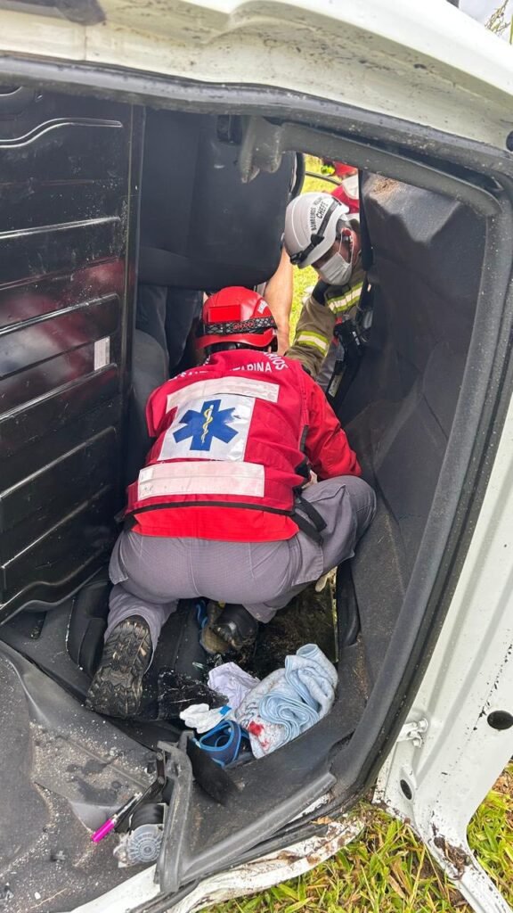 No local, os socorristas constataram que o veículo havia saído da pista e se encontrava em um terreno às margens da rodovia, em posição lateralizada. No interior do automóvel estava um homem de 43 anos, consciente, com o braço direito projetado para fora do veículo.