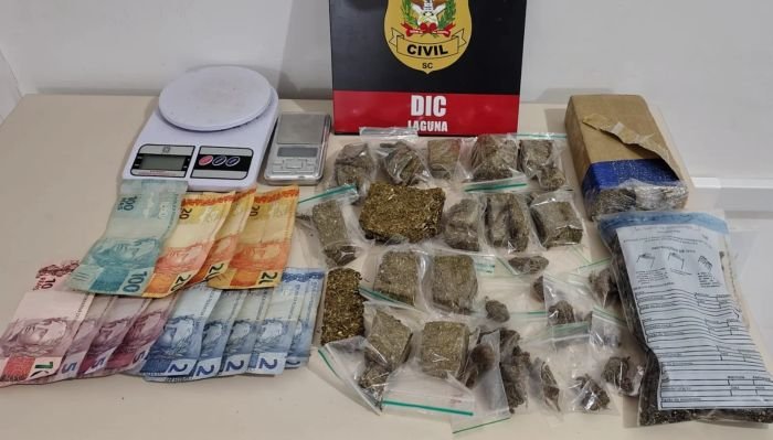 Um jovem de 21 anos foi preso em flagrante por tráfico de drogas na tarde desta quinta-feira (06) em Laguna. A ação foi realizada pela Polícia Civil, por meio da Delegacia de Investigação Criminal (DIC), durante o cumprimento de um mandado de busca e apreensão no bairro Campo de Fora.