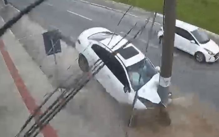 No local, os bombeiros constataram que se tratava de uma colisão contra poste envolvendo um veículo GM. A condutora, uma jovem de 21 anos, permanecia no interior do automóvel, sentada no banco do motorista e em estado estável.