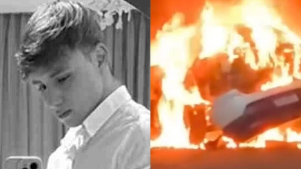 Pouco depois da colisão, o automóvel começou a pegar fogo, e as chamas se espalharam rapidamente. Pessoas que estavam nas proximidades ainda tentaram conter o incêndio utilizando uma mangueira de uma residência, mas não conseguiram controlar o avanço do fogo.
